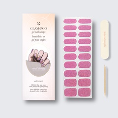Our GLAM & GO gel nail wraps ensure that no matter how complex your chosen nail design, the application process remains incredibly simple. Our GLAM & GO gel nail wraps require no glue, base coat, or top coat—just peel them off the packaging, apply them to your nail, trim to size, cure twice, and voilà!